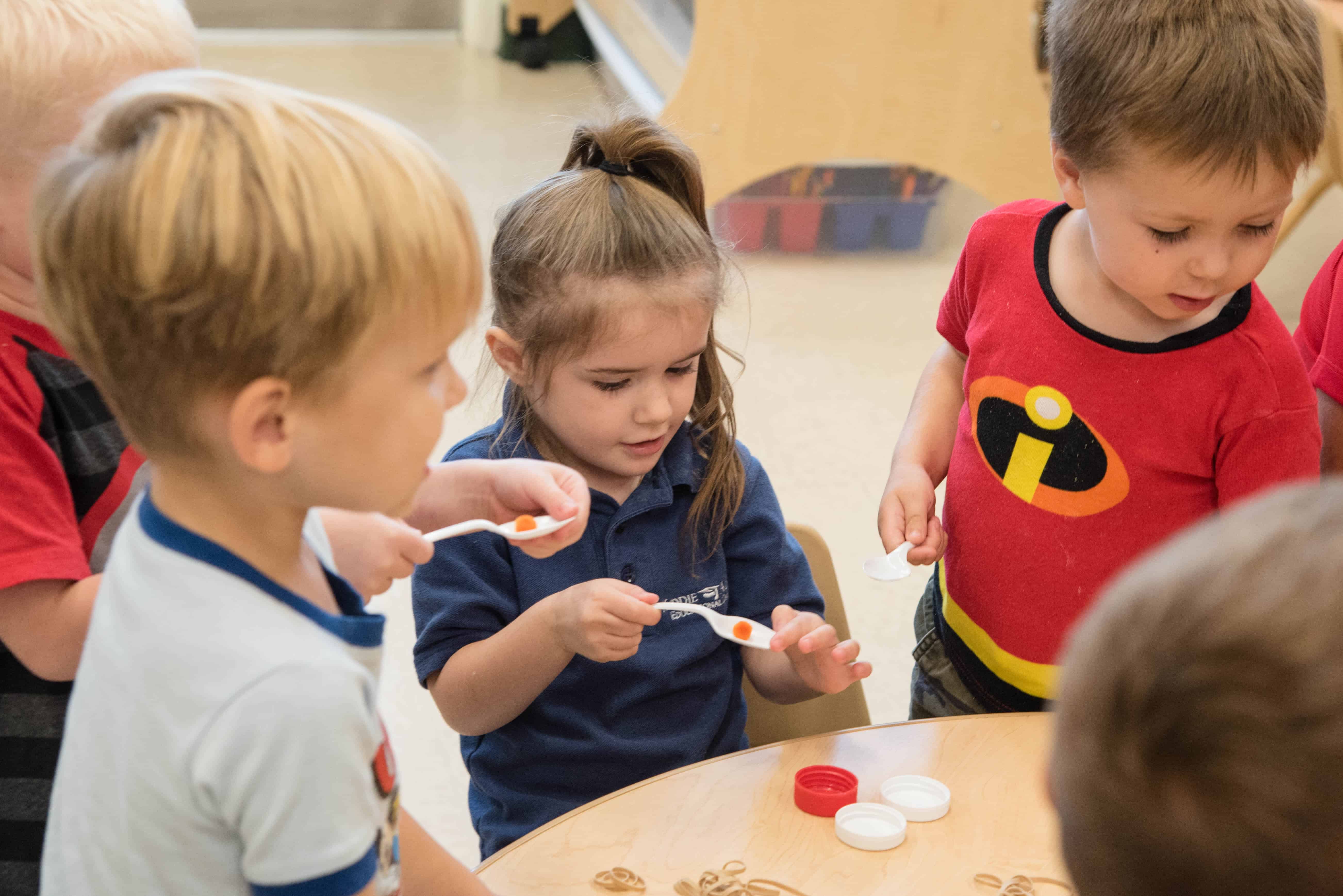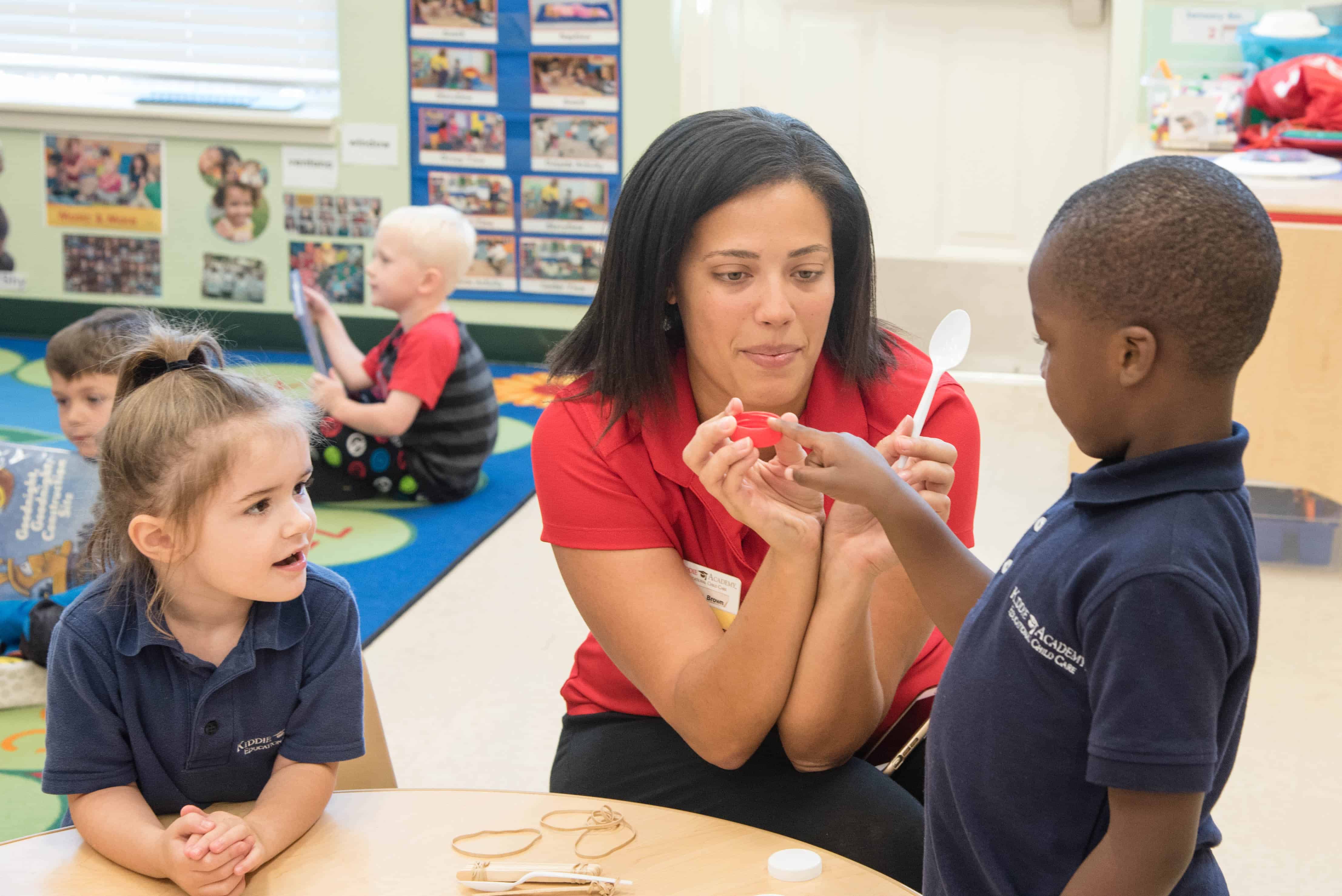 Children are naturally curious about the world around them. At Kiddie Academy, our educators tap into that sense of wonder and discovery with STEM Challenges (STEM is an integrated approach to Science, Technology, Engineering and Mathematics). Kiddie Academy’s STEM activities are designed to foster critical thinking and inquiry skills through hands-on, play-based, cooperative experiences for our students. This approach helps children think creatively, solve problems and discover new concepts on their own.